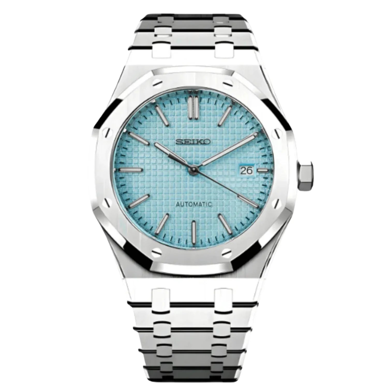 Inspirado en el modelo Royal Oak, junto con el alabado movimiento automático Seiko NH35 presentamos el Seikoak. Un reloj de 41mm de alta calidad combinando elegancia con accesibilidad.